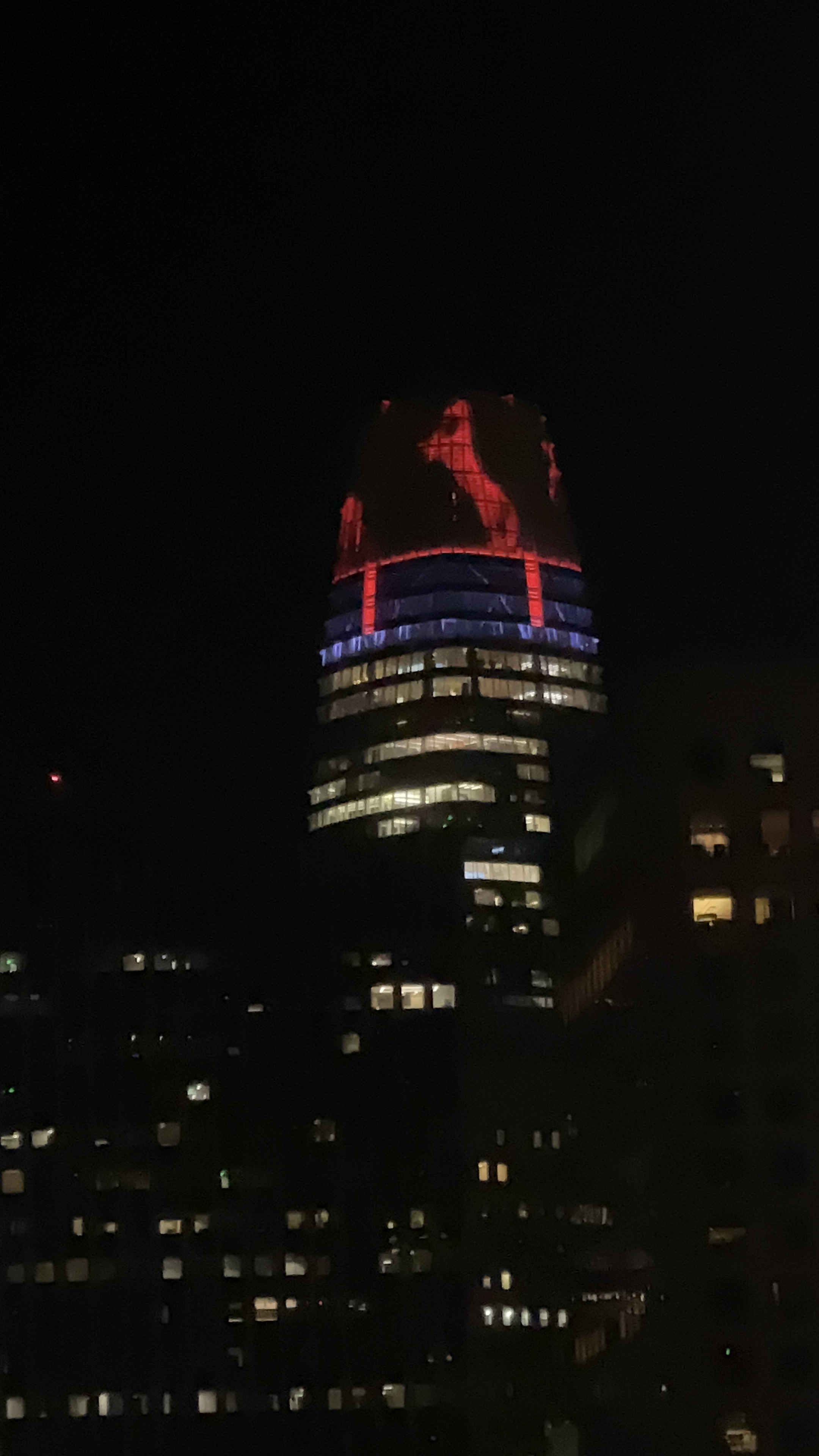It was dark when I got back to my room. I looked out at the skyline and that’s when I saw it — the Salesforce Tower, its LED crown glowing red with a horse in full stride, rotating slowly against the dark sky. For Chinese New Year. Unplanned. Just the city’s quiet welcome.